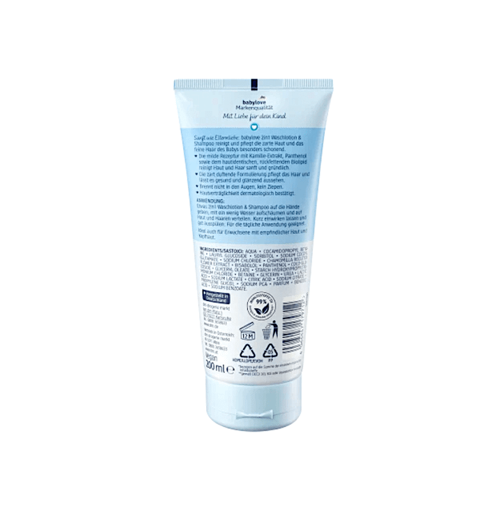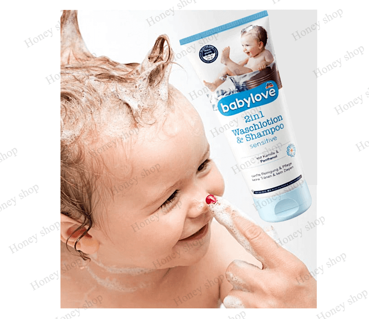 لوسیون و شامپوی کودکbabylove 2in1 پوست لطیف و موهای نازک کودک را به شیوهای ملایم تمیز میکند و از آنها مراقبت میکند.