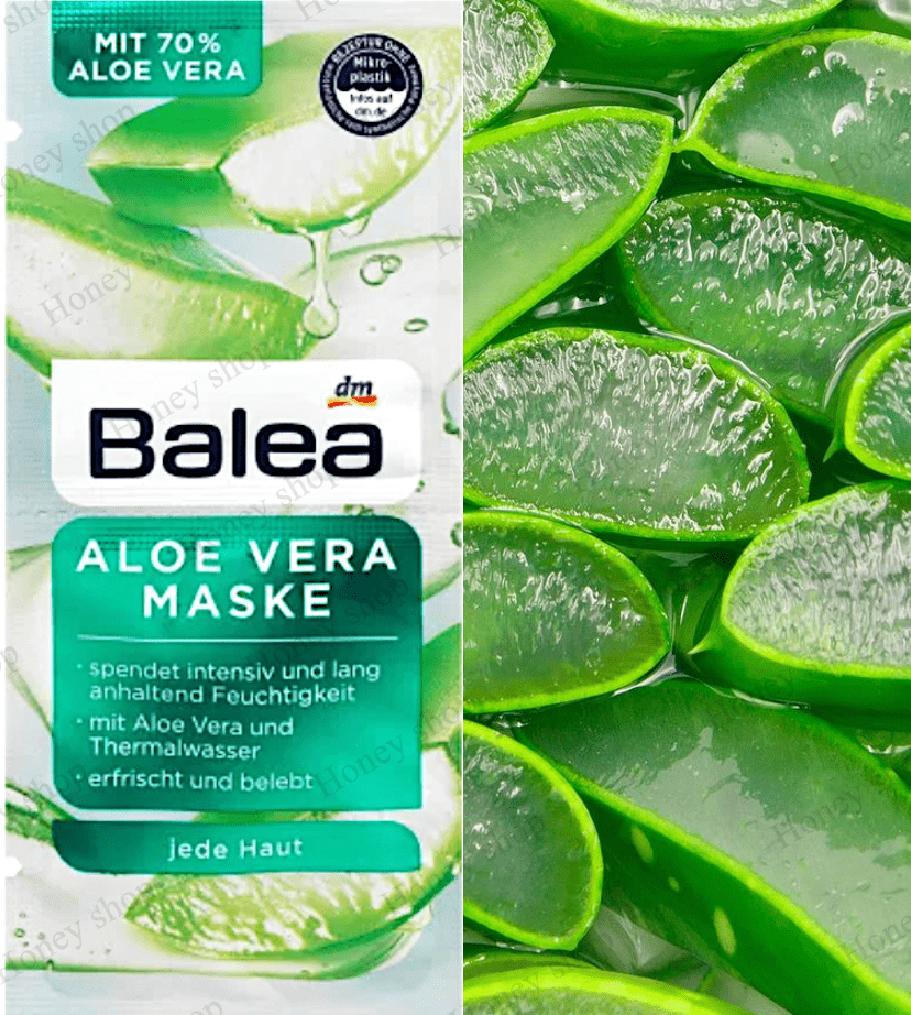 ماسک آلوئه ورا Balea با70% آلوئه ورا، پانتنول و کره شی باعث افزایش رطوبت پوست به مدت ۲۴ ساعت میشود.