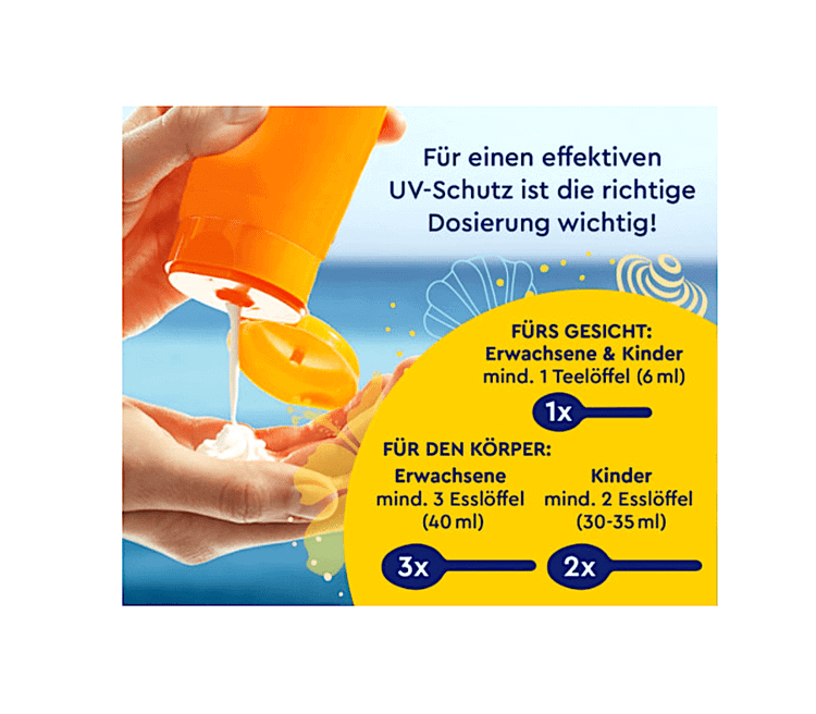 قبل از قرار گرفتن در معرض نور خورشید به میزان زیادی از ضد آفتاب استفاده کنید.مقادیر کم کاربرد عملکرد محافظتی را به میزان قابل توجهی کاهش میدهد.برای حفظ محافظت، چندین بار از آن استفاده کنید، به خصوص هنگام تعریق یا بعد از شنا و خشک شدن. از آفتاب شدید ظهر خودداری کنید. حتی کرمهای ضد آفتاب با فاکتور حفاظتی بالا در برابر اشعه ماوراء بنفش محافظت کاملی ندارند. با وجود استفاده از ضد آفتاب، برای مدت طولانی زیر نور آفتاب نمانید.