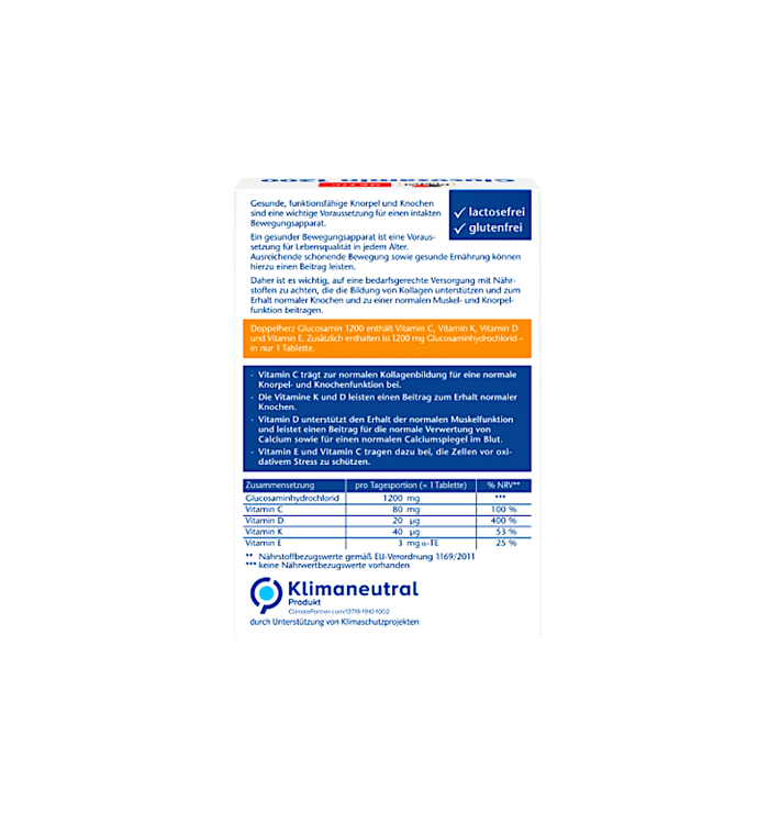 حاوی ویتامین های C، K، Dو E است. همچنین حاوی 1200 میلی گرم گلوکزامین هیدروکلراید در هر قرص.
