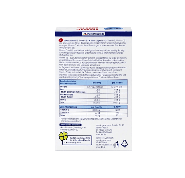 این مکمل حاوی ویتامین Cویتامین D3 و سلنیوم است و به عملکرد طبیعی سیستم ایمنی کمک میکنند.