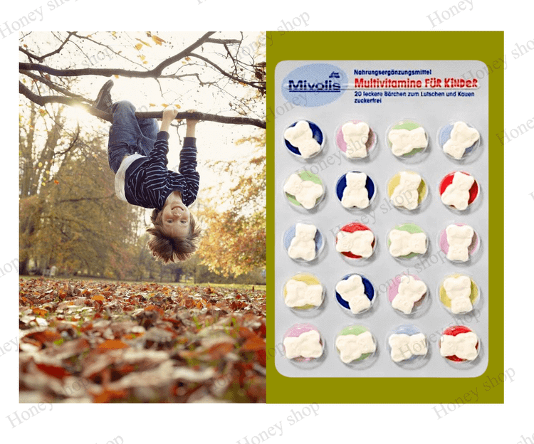 مولتی ویتامینهای Mivolis برای کودکان خرسهای کوچک خوشمزه برای مکیدن و جویدن هستند. آنها بدون قند هستند و طعم میوه پرتقال دارند.