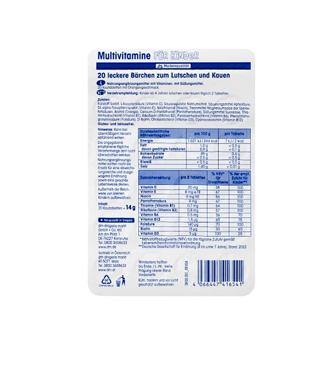 کودکان 4 سال به بالا باید روزانه 2 قرص را بمکند یا بجوند.