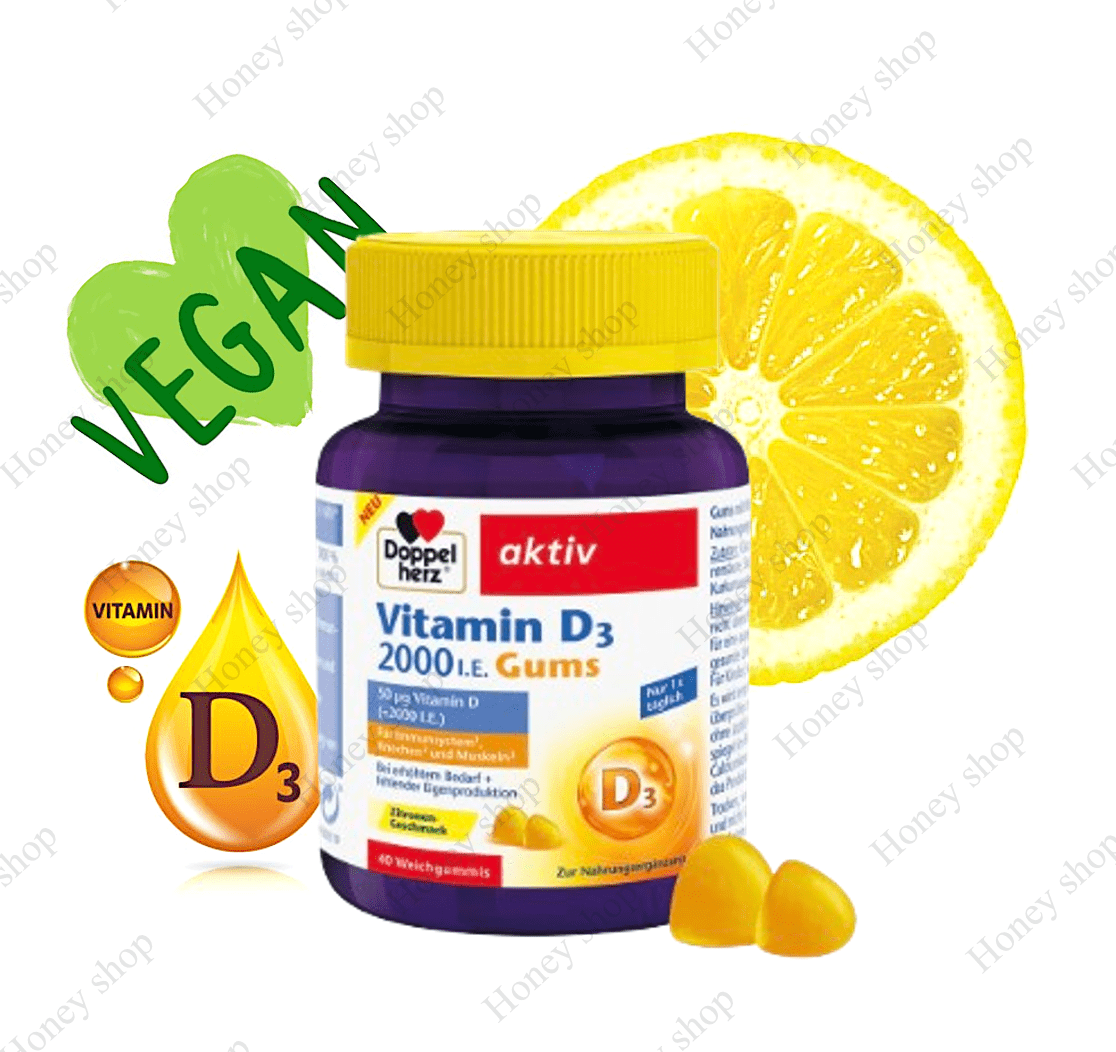 پاستیل گیاهی ویتامین D3 2000 I.E از دوپل هرز حاوی دوزهای بالایی از ویتامین دی است که میتواند به حفظ استخوانها و دندانهای طبیعی کمک کند و از عملکرد طبیعی سیستم ایمنی بدن حمایت کند.