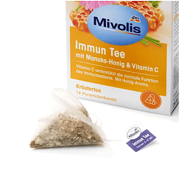 چای ایمنی Mivolis حاوی عسل مانوکا و ویتامین C از سیستم ایمنی بدن پشتیبانی میکند.