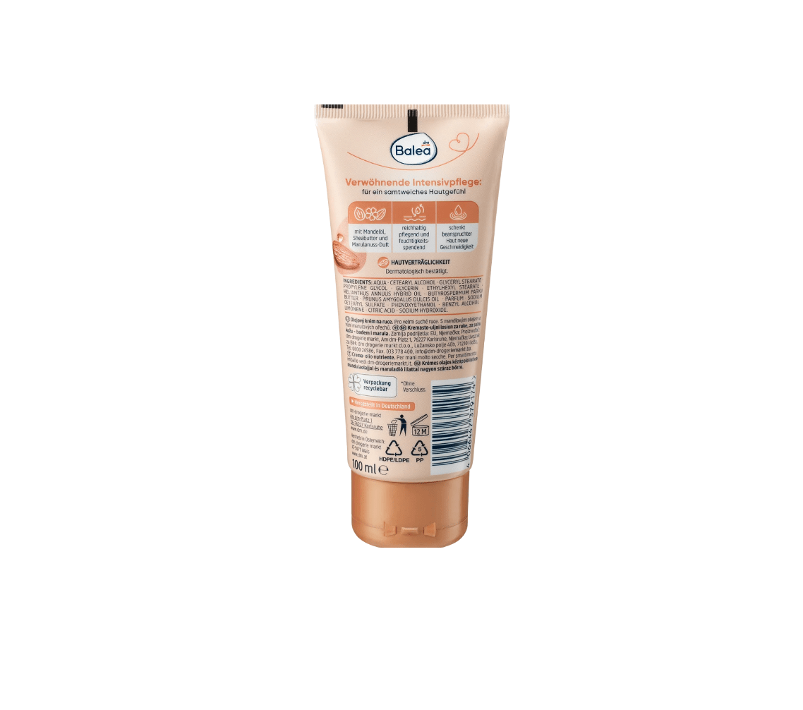 لوسیون دست کرم-روغن Balea برای دست های خیلی خشک مناسب است. فرمول لطیف کننده با روغن بادام، کره شی و رایحه مارول به پوست احساس نرمی مخملی می بخشد. مراقبت غنی به پوست استرسی لطافت جدیدی می بخشد.