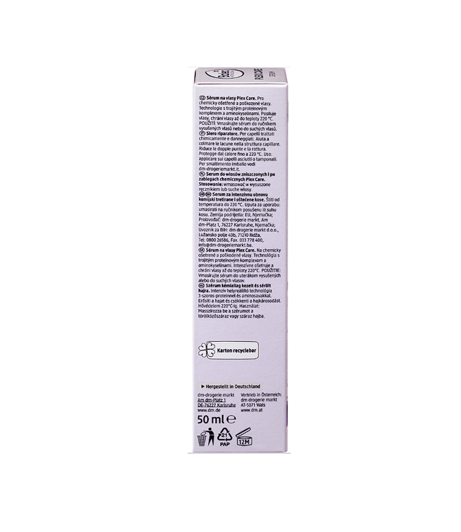 سرم Plex Care از Balea Professional حاوی فرمول قدرتمند و کمپلکس پروتئینی سه گانه و اسیدهای آمینه، تارهای مو را تقویت کرده و ساختار آسیب دیده مو را بازسازی میکند.