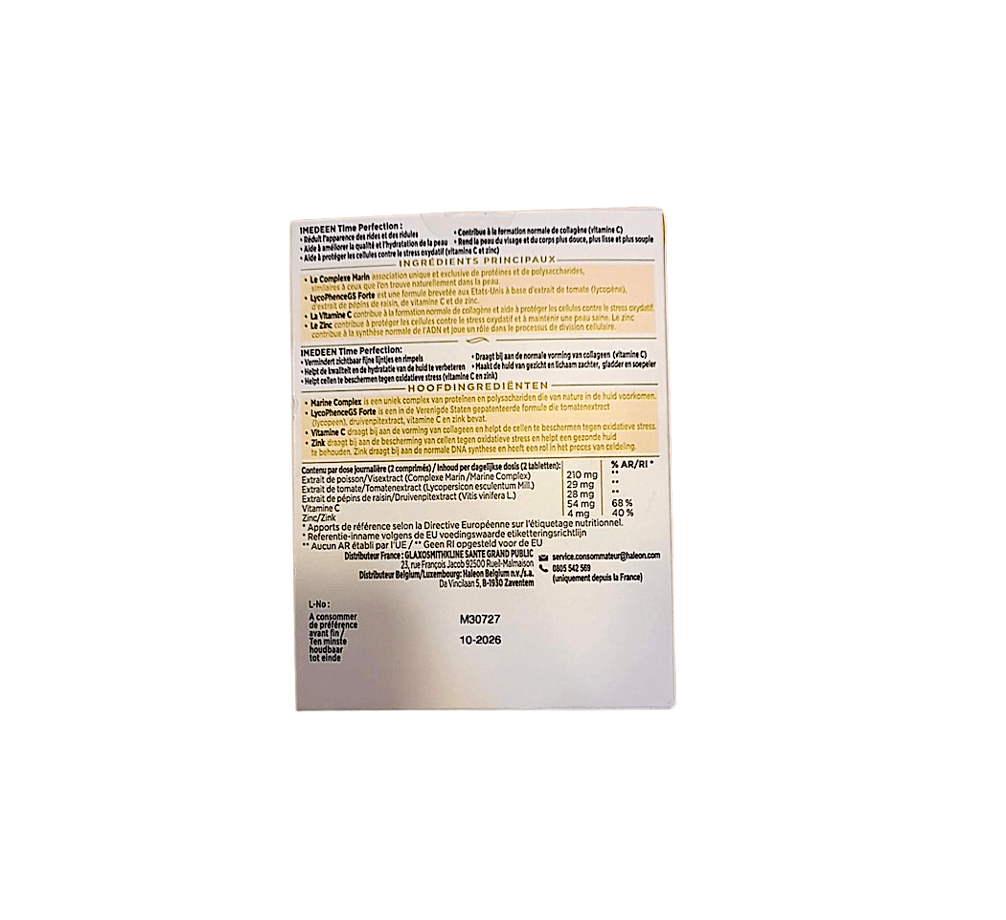 فرمول Imedeen Time Perfection با ترکیبی منحصربهفرد از عصاره دریایی، عصاره گوجهفرنگی و هسته انگور، ویتامین C و روی، بهطور مؤثری نیازهای پوست بالغ را برآورده کرده و از پیری زودرس جلوگیری میکند.