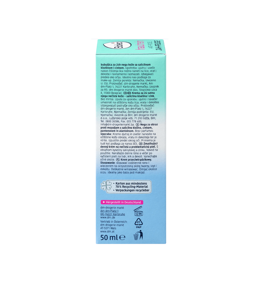 کرم پاک کننده پوست ضد جوش ۲۴ ساعته Balea به عنوان یک درمان ویژه برای جوشها و جوشهای سرسیاه مناسب است. این کرم صورت میتواند با ناخالصیها مبارزه کند و از تشکیل ناخالصیهای جدید جلوگیری کند.