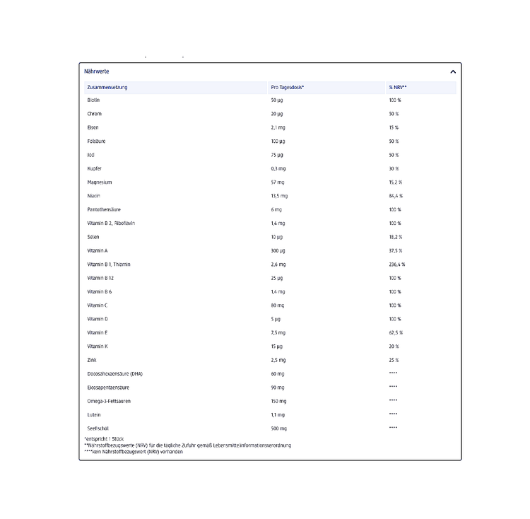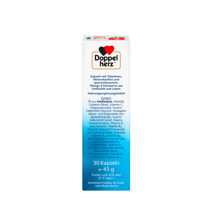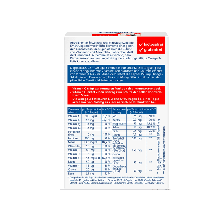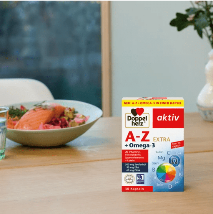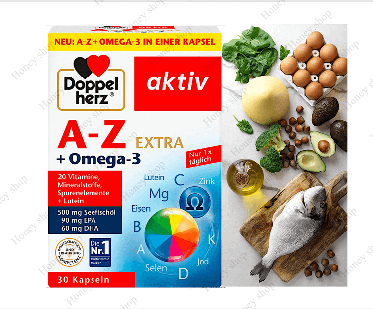 کپسولهای A-Z + امگا ۳ اکسترا از دوپل هرز حاوی محتوای بالایی از اسیدهای چرب امگا ۳ و ۲۰ ویتامین، ماده معدنی و عناصر کمیاب، از جمله لوتئین هستند.