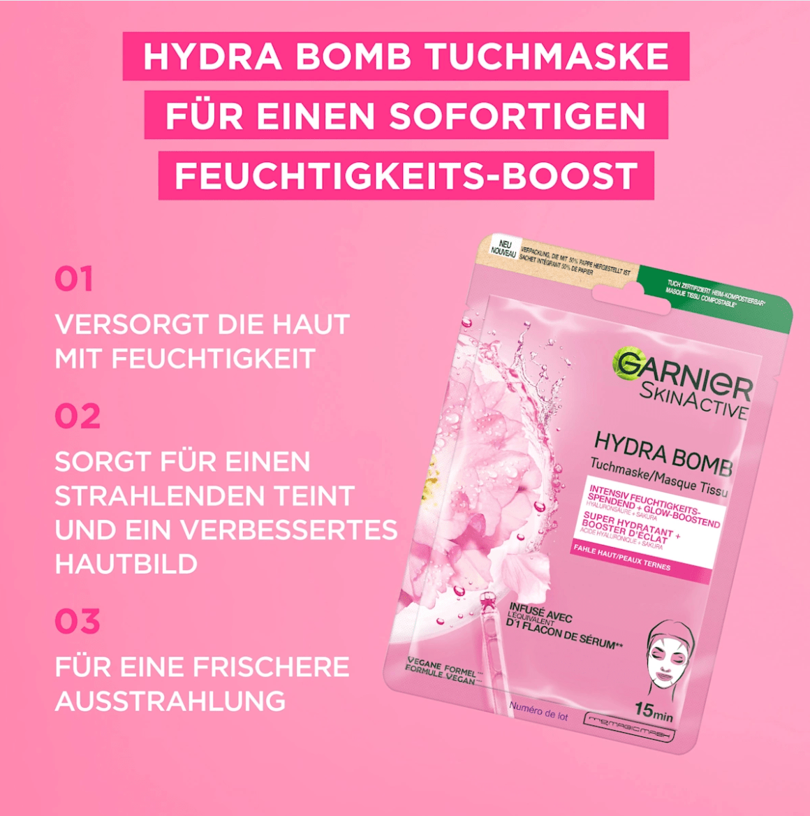 💗ماسک ورقهای پنبهای گارنیه مدلSkin Active آغشته به عصاره ساکورا، اسید هیالورونیک و سرم مرطوبکننده است که مراقبتی غلیظ با نتایج فوری و قابل مشاهده به پوست میدهد.