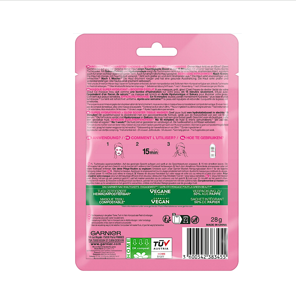 💗ماسک ورقهای پنبهای گارنیه مدلSkin Active آغشته به عصاره ساکورا، اسید هیالورونیک و سرم مرطوبکننده است که مراقبتی غلیظ با نتایج فوری و قابل مشاهده به پوست میدهد.
