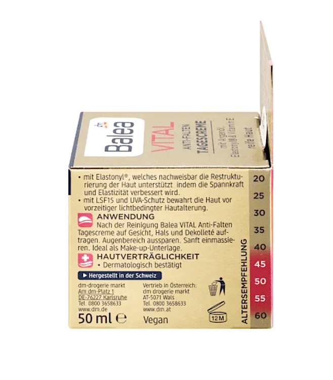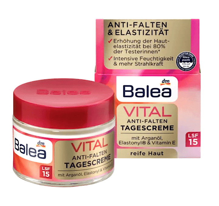 کرم ضد چروک بالهآ مدلVital Tagescreme عمق چین و چروک پوست را به طور قابل توجهی کاهش داده و منجر به کشش و انعطاف پذیری پوست میشود.