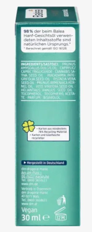 فرمولاسیون غنی روغن صورت سیاهدانهBalea حاوی بیزابولول و ویتامین E به سرعت جذب میشود و احساس تنش و خطوط ریز صورت را کاهش میدهد. مصرف این روغن باعث ایجاد إحساس چربی روی پوست نمیشود..