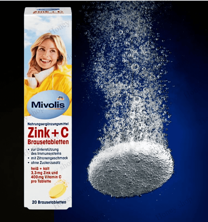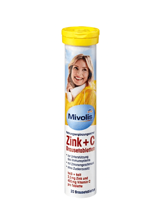 قرص جوشانMivolis Zink + C طعم تازه ای از لیمو دارد.