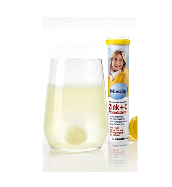 قرص جوشانMivolis Zink + C طعم تازه ای از لیمو دارد.